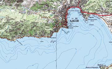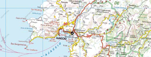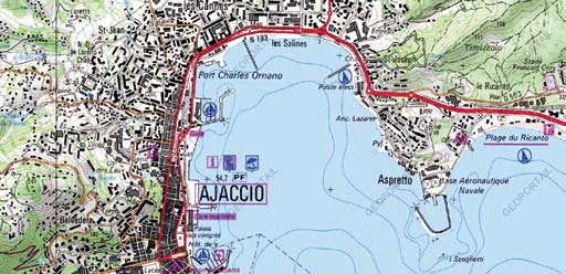 La carte permet de visualiser le réseau routier, qui traduit la position en cul-de-sac de la ville, avec deux grands axes, vers le nord (Corte-Bastia) et vers le sud (Sartène et Bonifacio) de l’île. On note également la présence d’un aéroport auquel il convient d’ajouter une gare maritime, assurant tous deux les liaisons avec le continent.