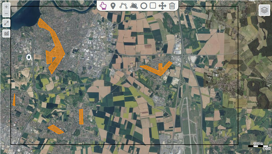Cette activité d'une heure a pour objectif la réalisation d'un croquis. En utlisant les différentes couches d'information à leur disposition (carte topographique et photographe aérienne) et en faisant d'éventuelles recherches internet sur les lieux remarquables, les élèves doivent réaliser un croquis montrant que l'espace périurbain est un espace complexe, entre urbain et rural et multifonctionnel.