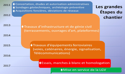 Schéma présentant le phasage du chantier LGV SEA. |
