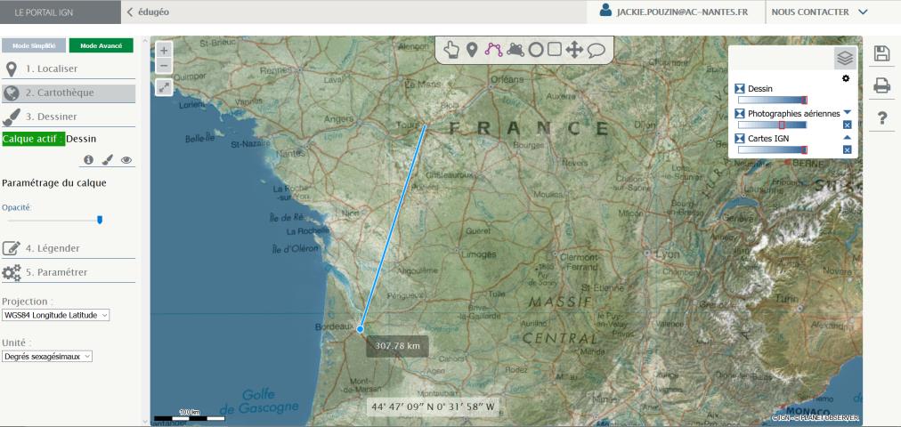 Il s’agit de manipuler les changements d’échelle, de superposer des couches, de manipuler les outils de mesure (étude de la pente – dénivelée – profil altimétrique sur le Géoportail) ou les outils croquis.