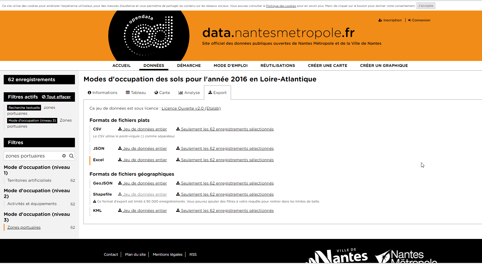 Pour réaliser cette production cartographique, j'ai utilisé les ressources de l'open data de la métropole qui propose un ensemble de données décrivant les modes d'occupation des sols en Loire Atlantique.